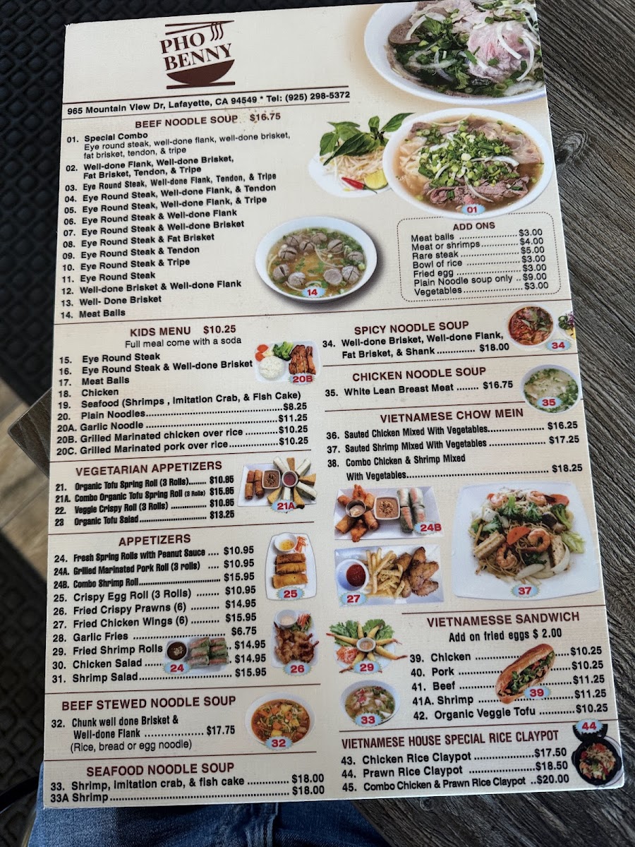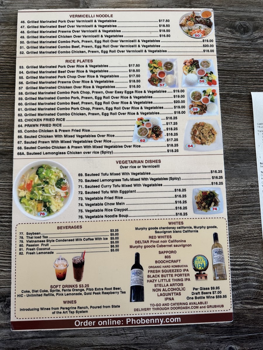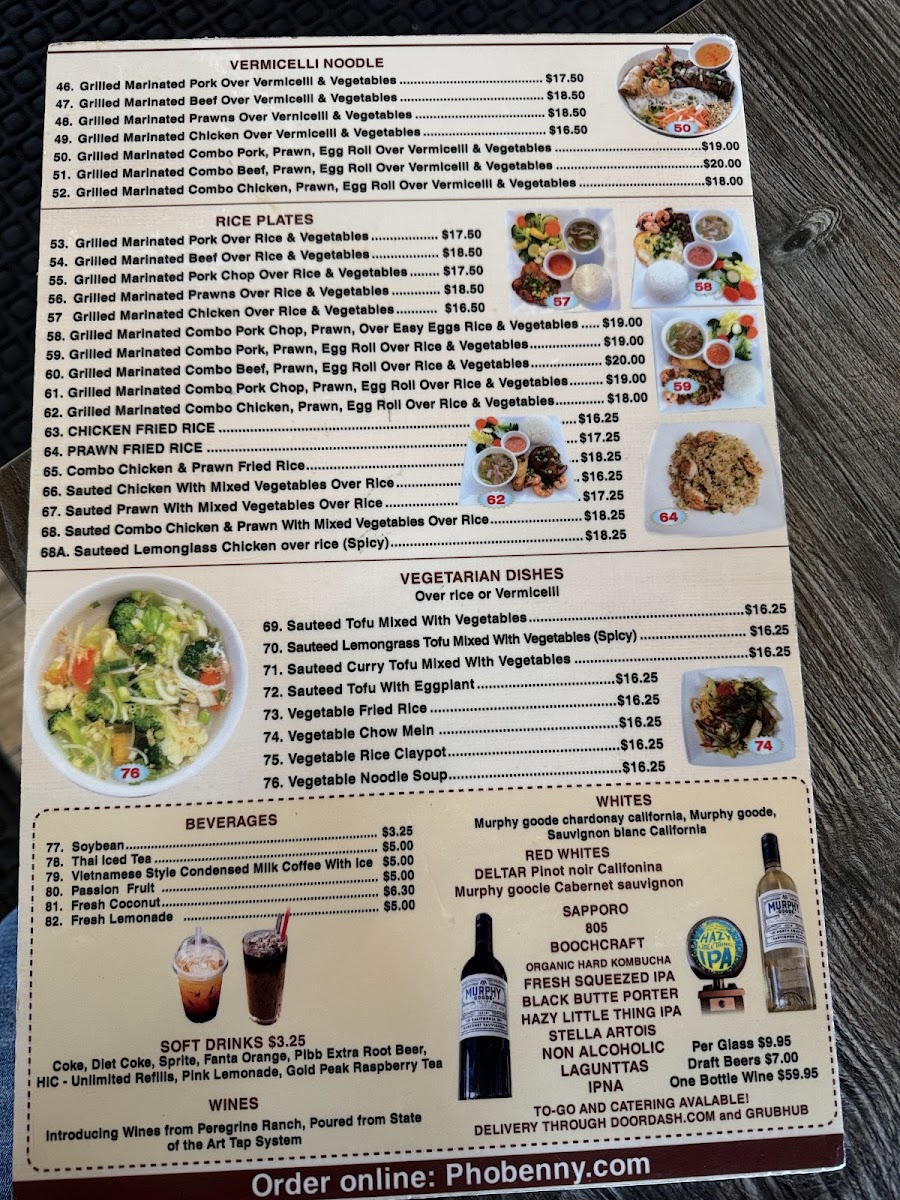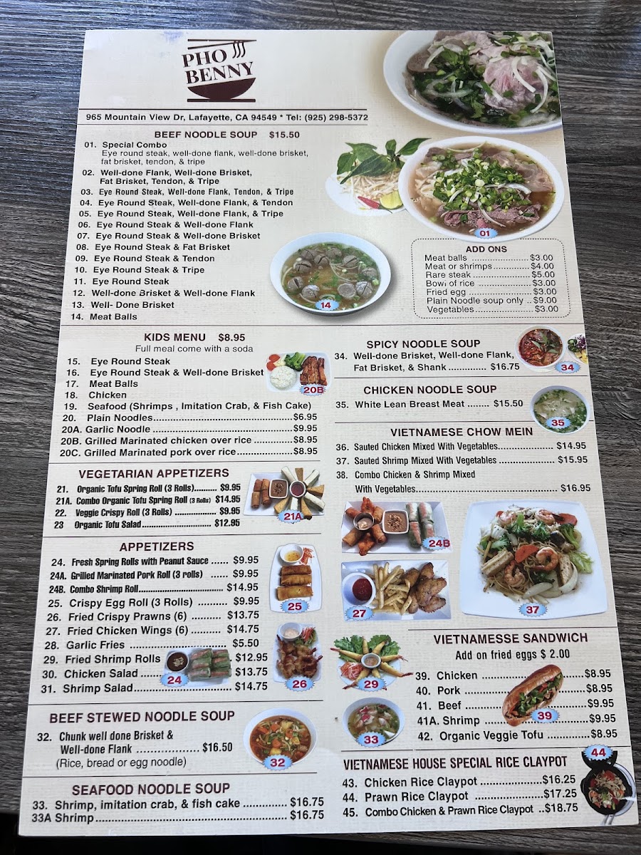 Pho Benny offers a menu rooted in traditional Vietnamese comfort, centered around their signature pho and a variety of flavorful dishes that suit any time of day. The menu strikes a balance between casual favorites and thoughtfully prepared meals, making it easy to stop by for a warm bowl of noodle soup on a cool evening or a fresh Vietnamese sandwich for a satisfying lunch.